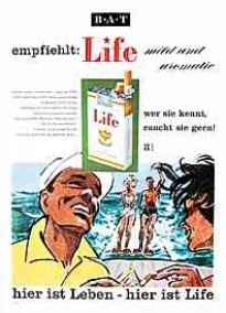 | | "BAT empfiehlt: Life - mild und aromatic - wer sie kennt, raucht sie gern!"