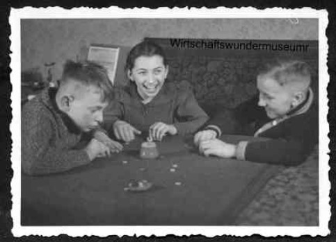 |  | Ein Klassiker: Die bunten Plättchen werden - unter zuhilfenahme anderer Plättchen - in den pilzförmigen Behälter geschnipst. Da das mit etwas Phantasie aussieht, als würden Flöhe springen, heißt das Ganze sinnigerweise auch "Flohspiel".