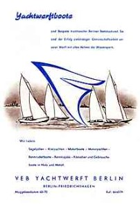| | VEB Yachtwerft Berlin - "Yachtwerftboote sind Beispiele traditioneller Berliner Bootsbaukunst. Sie sind der Erfolg zielstrebiger Gemeinschaftsarbeit mit allen Aktiven des Wassersports."
