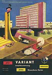 | Jugend und Technik - Titel: "Stadtbild von übermorgen" - Themen z.B.: "Wo bleibt das Spielzeug unserer Zeit?", "Wo früher Eisenkarren klirrten rollen heute Bänder", "Flugzeuge senkrecht gestartet", "Die Stadt von morgen"
