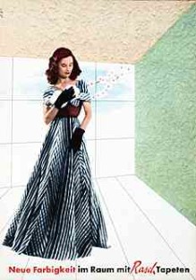 kennt keinen "grauen" Alltag mehr. Sprechen sie nicht eine deutliche Sprache, die bunten Bilder dieser Seiten?! Die unbestechliche Kamera hat sie im Farbfilm festgehalten – eine bunte Welt! Die bunte Welt der modernen Frau, die keinen "grauen" Alltag mehr um sich dultet. Man will es heute freundlicher haben – auch im Haushalt, auch im Heim!" (1955)