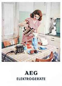 | | Der Elektrohaushalt - "365mal im Jahr der gleiche Wunsch: endlich auf einem Elektroherd kochen können, wobei Töpfe, Hände, Schürze und Wände sauber bleiben." |