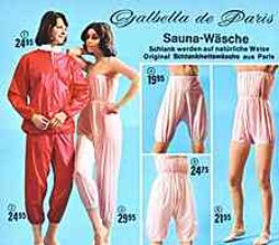 | | Neckermann - "Schlank und fit durch gezielte Massage" | | Neckermann - Links: "Sexy-Hausanzug. Mit einem Rüschen-Ausschnitt, der tief blicken läßt." - Rechts: "Eleganter Morgenmantel. Mit schmeichelnder Marabu-Umrahmung."