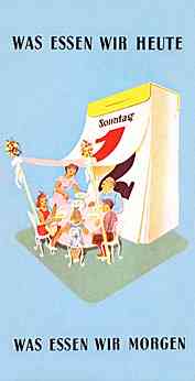 Für Viele sind die schweren Kriegs- und Nachkriegsjahre in ihren ganz persönlichen Erinnerungen zu einem kurzen Intermezzo zusammengeschmolzen. Nun ist der Blick nach vorn gerichtet, die Deutschen "sind wieder wer" und wollen das auch zeigen. Obwohl es erst im letzten Drittel der 50er auch breiteren Bevölkerungsschichten finanziell besser geht, hat der Aufschwung jetzt schon in größerem Umfang Auswirkungen auf die Speisezettel. Innerhalb der vielen verlockenden neuen Angebote in den Auslagen der Schaufenster sind Lebensmittel noch am ehesten erschwinglich, das Nachholbedürfnis ist enorm.