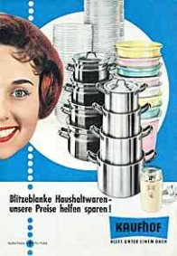 | | | |  | Kaufhof - "Blitzeblanke Haushaltswaren - unsere Preise helfen sparen!", Prospekt | | | | "Für Haus und Küche" - Haushaltswaren-Prospekt (schätzungsweise um 1959) |