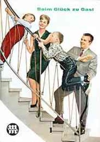 |  | Musterring - "Die Liebe, mit der wir unsere Wohnung ausstatten und gestalten, ihr unsere eigene, persönliche Note geben - diese Liebe kehrt täglich und tausendfach zu uns zurück als Freude und Glück am schönen und gepflegten Heim, in dem wir uns erholen und entspannen, in dem wir frohe und heitere Stunden erleben, sei's allein, im Kreis unserer Familie oder in der Runde mit Freunden." (1955)