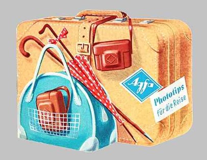 "Phototips für die Reise", kleine Ratgeber-/Werbebroschüre im Kofferformat   "Photographieren macht riesigen Spaß", Katalog Grossversandhaus Quelle, 1959