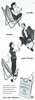| | | "Damit niemand darüber hinwegsieht, daß der Filter im Mundstück hinter den guten Überseetabaken aus Kuba, Mexiko, Java und Brasillien die Attraktion dieser beiden Rillos ist, habe auch ich mich etwas attraktiv gemacht. - Recht so, meine Herren?" (1976) | | |