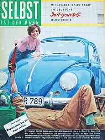 Aus dem eigentlich geschlechtsneutralen "do-it-yourself" wurde im Deutschen bezeichnenderweise ein "Selbst ist der Mann". Immerhin darf die Frau Handlangerdienste leisten. (1960)