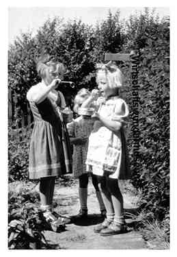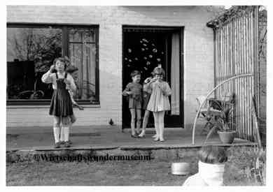 | | | |  | | | | | | Drei Kinder pusten Seifenblasen und das Vierte fängt sie... (Privatfoto Sammlung Wirtschaftswundermuseum)