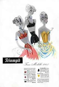 |  | | Triumph - "Teen-Modelle 1957" | | Triumph - "Sie findet Anklang - ...überall ist sie gern gesehen - jeder mag sie gut leiden. Ihr natürlicher Charme und ihre vollkommene Figur lassen sie zum Mittelpunkt jeder Gesellschaft werden." | | felina - "capri - citrus - geranie" |