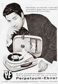 | Perpetuum - Ebner - "Vico Torriani, von Millionen in aller Welt umschwärmt, lauscht dem wundervollen Klang seines PE-Phonokoffers." - Mehr Werbung mit Stars und Prominenten der 50er und 60er Jahre HIER | | Perpetuum-Ebner - ""Verstärker-Phonokoffer REXA - Der Geheimtip des beliebten Schlagersängers Peter Alexander"