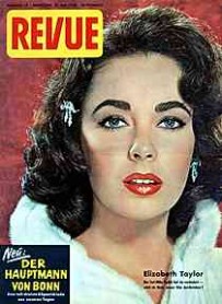 | | DEUTSCHE ILLUSTRIERTE - Titel: "Vera Tschechowa - Katze für Hollywood - Nach ihrer Bombenrolle in dem Streifen "Das Mädchen mit den Katzenaugen", wird die junge Schauspielerin ihren ersten amerikanischen Film drehen" - Weiteres Thema: "Halbstarke" | | REVUE - Titel: "Elizabeth Taylor - Der Tod Mike Todds hat sie verändert - wird sie ihren neuen Film durchstehen?" - Weiteres Thema: Elizabeth: "Das Leben der Königin - Palast Tagebuch" | | Funk und Fernseh Illustrierte - Themen z.B.: "Ein Mädchen zum Heiraten - Heiterer Roman von Barbara Noack", "B.B. auf hohem Roß" |