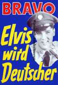 | |  | | Kristall - Titel: Bill Haley - "Keine Angst vor Rock'n'Roll" | | Elvis Presley kommt 1958 als GI nach Deutschland - Bravo Werbeplakat für den Zeitschriftenhandel: "Elvis wird Deutscher", 53 x 36 cm | | Weltbild - Titel: "Alles über "Rosemarie" - Nadja Tiller als Lebedame Nitribitt in ihrem Film "Das Mädchen Rosemarie" - Weitere Themen z.B.: "Bestechungs-Affären: Müssen Beamte so sein?", "Olaf's Himmelfahrt - Zum Tode des Zeichners Olaf Gulbransson"